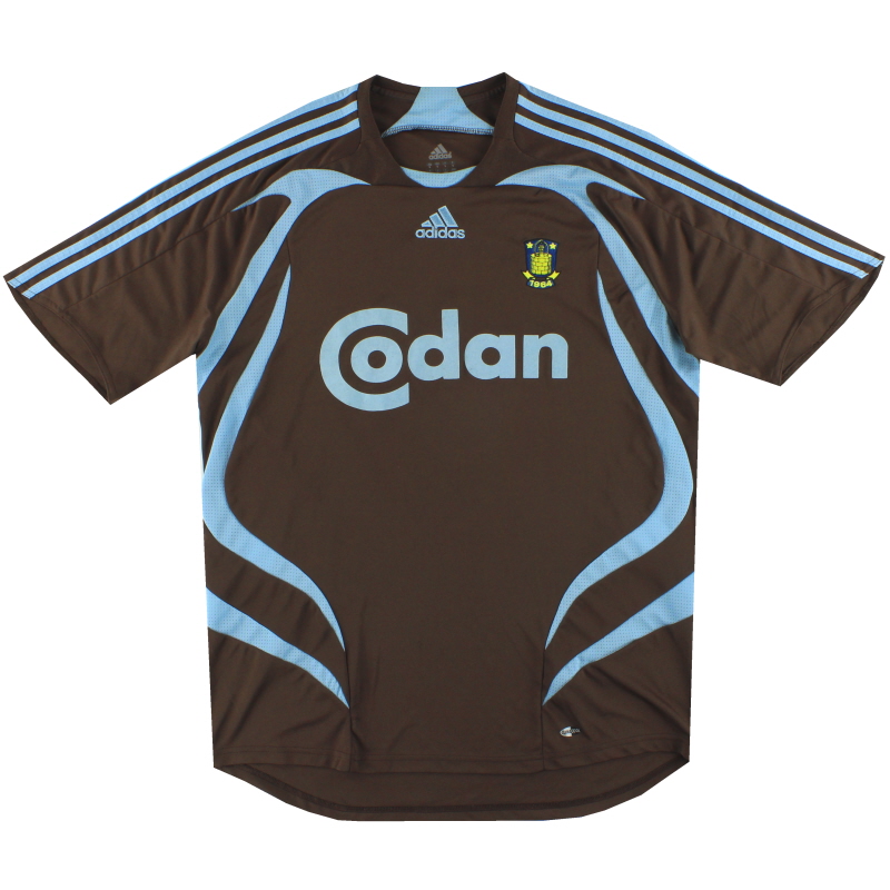 Brøndby IF unveiled their new brown away kit for the 2007/2008 season. The home kit is yellow-blue and remains the same for the 07/08 season.