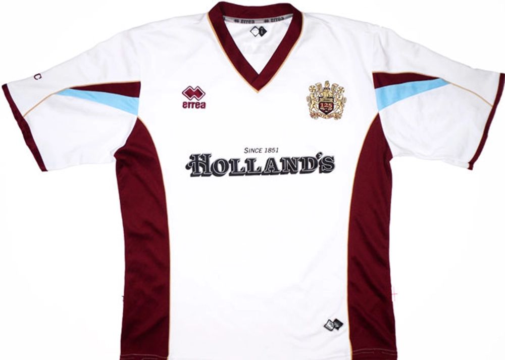 Burnley revealed the away kit to be worn for the 2007/08 Championship season. Complimenting the predominantly claret home shirt and the special 125th anniversary shirt, the Errea-produced away kit sees Burnley return to a white shirt , with claret shorts and claret socks