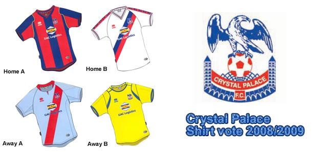 The Crystal Palace kit designs for next season have now been announced and on the club's official website. They give fans the chance to decide on the home and away shirts which the team will be wearing for season 2008/09.