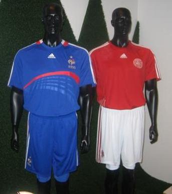 Some snapshots of some adidas kits were taken at an adidas euro2008 meeting. Could this be the new Adidas France, Denmark, spain and Germany shirts for the Euro2008 tournament? or just some samples ..who knows..