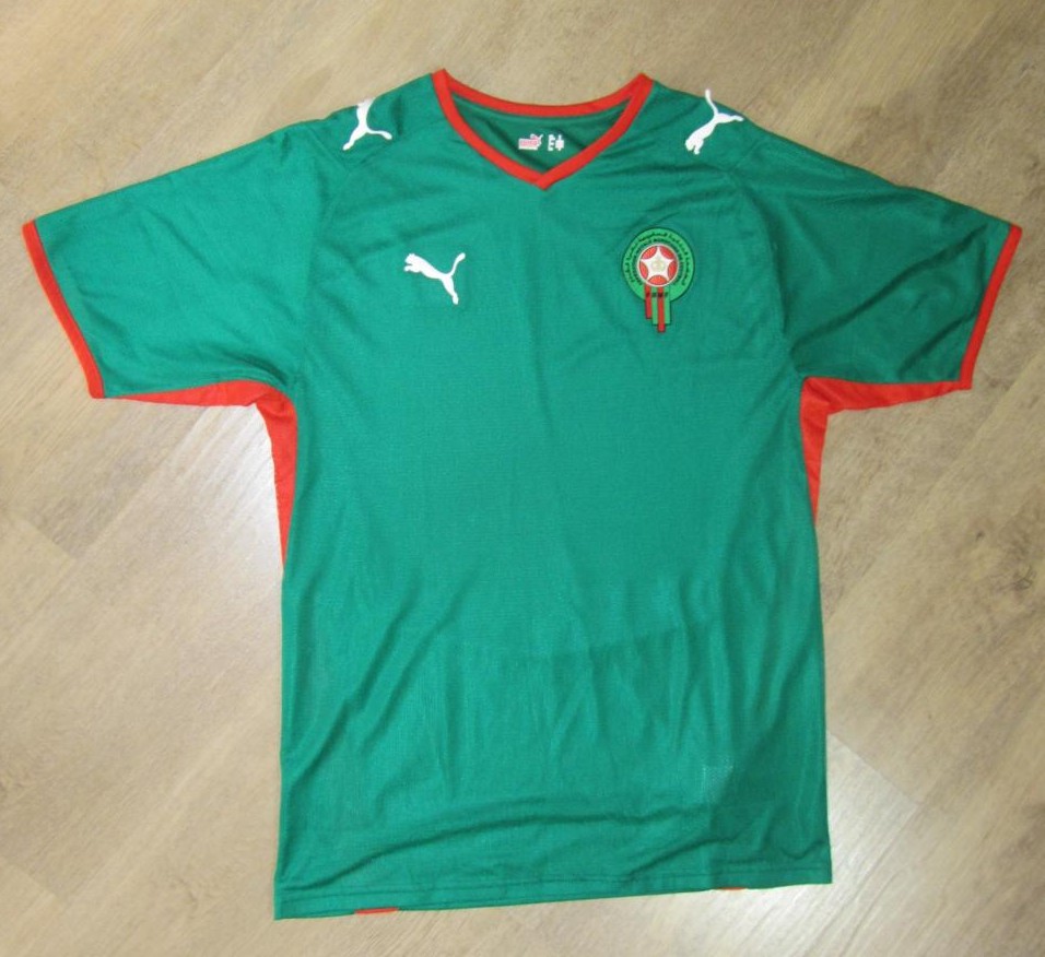 This is the new Morocco 08/09 and Africa Cup 2008 home shirt made by Puma. The sportswear company act as technical supplier to Angola, Morocco, Cameroon, Ghana, Ivory Coast, Senegal, Togo, Egypt and Tunisia, half of the 16-team field at the tournament that runs from January 20 to February 10.