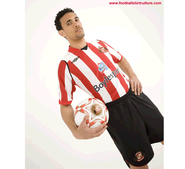 After the leaked picture of the 08/09 away shirt.. here it is ... Sunderland's home kit for the 2008-09 season. The new kit will be available to buy from official SAFC stores (Stadium of Light; Sainsbury's, Washington; and Debenhams,Sunderland) on May 7.
