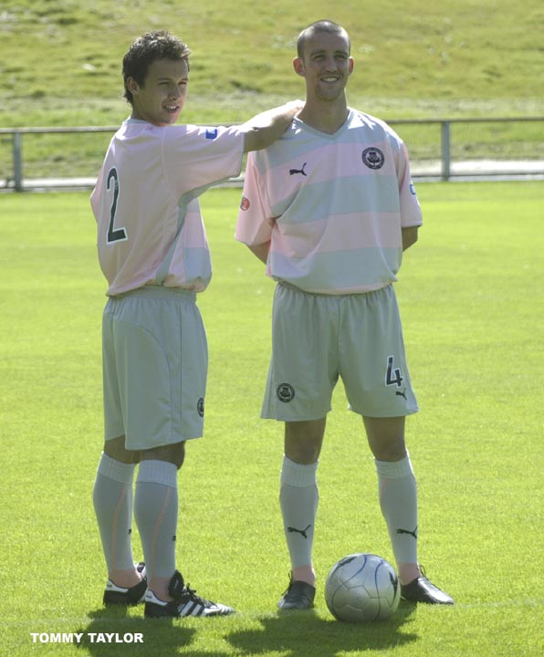 Jags duo Scott Chaplain and Simon Storey modelled the new away strip, which is sure to get the whole country talking and will be worn on Tuesday evening when ex Thistle boss Dick Campbell brings his Forfar side to Firhill.