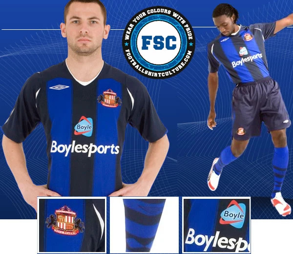 Sunderland revealed their new away kit for the 08/09 season made by Umbro. A leaked picture of the 2008-2009 away shirt was on FSC a few months ago and the Sunderland 08-09 home kit can be found here.