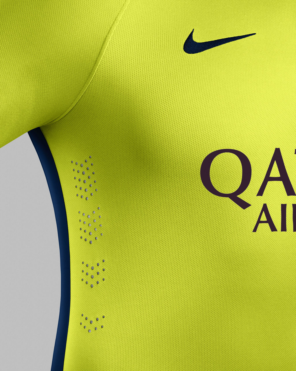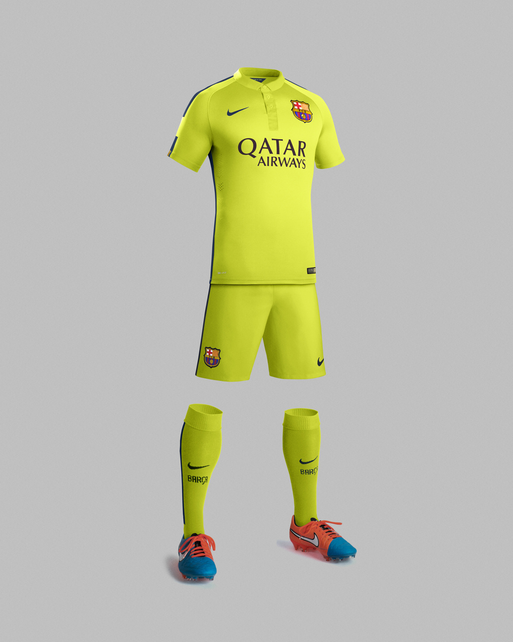 The kit consists of two tones of Volt yellow, which first appeared in Barcelona’s away kit in 2005. The shirt, shorts and socks all feature the distinct Volt color on the front, with a darker tone of the same yellow on the back.