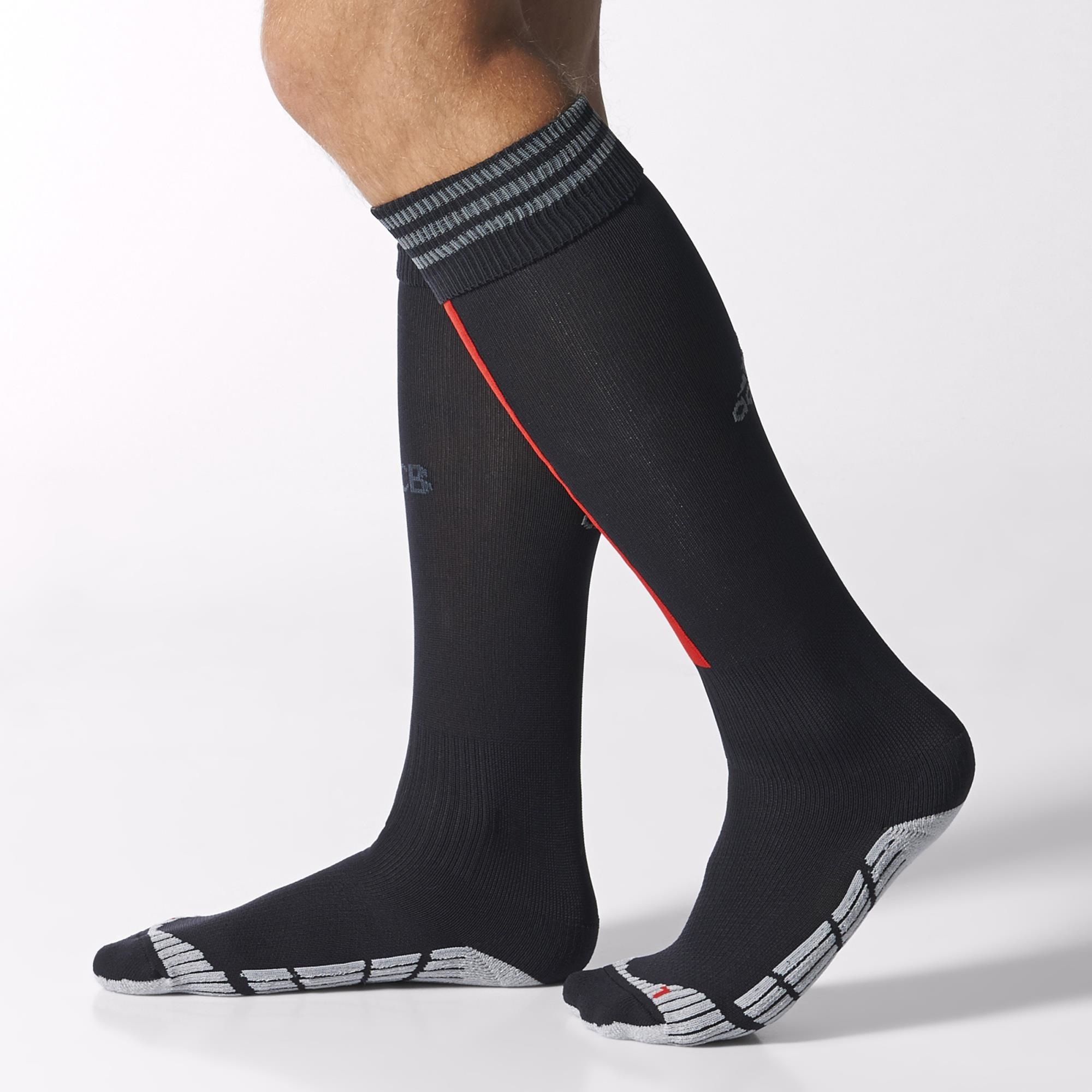 In a novel approach, the red stripe is continued on both the left leg of the shorts and then onto the left sock, bringing unity to the whole kit.