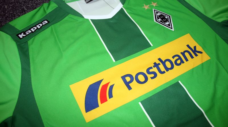 The yellow Postbank sponsor's logo contrasts strikingly and the sleeves carry Kappa logos in white.