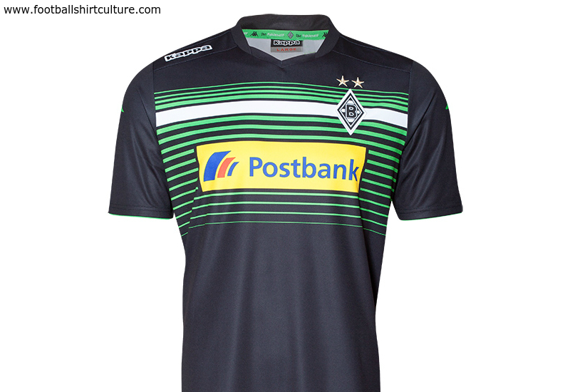 This is German Bundesliga side Borussia Mönchengladbach's Europa League shirt and kit, by Kappa, being worn in this season's secondary European competition.
