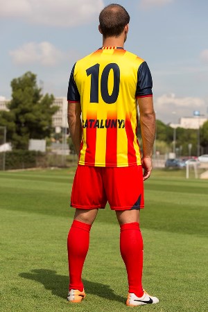 The images here show the new, 2014-15 season, Catalunya (Catalonia) Home football shirt and kit, by Pony.