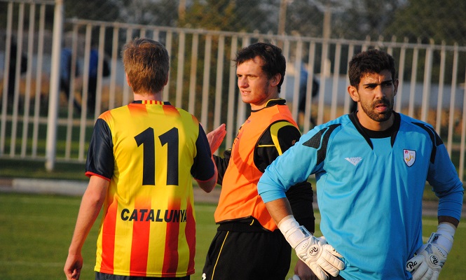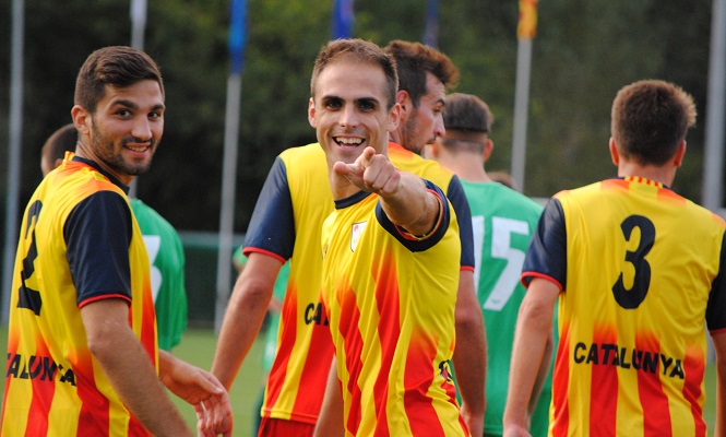 The simple roundneck collar is in navy, along with the sleeves (a shade of blue most likely included to represent the separatist "Estelada" flag). The lower back is printed with "CATALUNYA", also in navy.