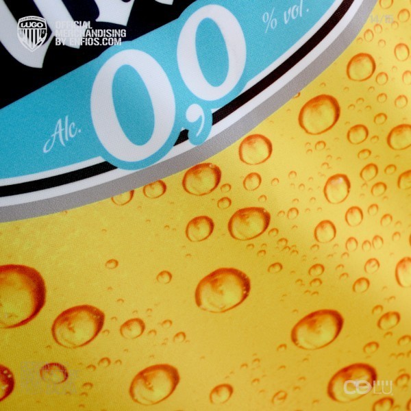 The outfield shirt is styled as a glass of beer, in amber, complete with bubbles and head in white, as a nod to club sponsor and brewery Estrella Galicia. The shirt is combined with black shorts and socks.
