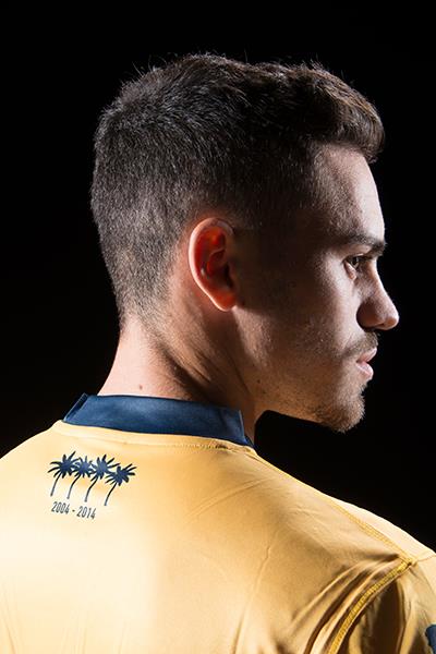 The minimalist shirt - in its basic design - is in a golden yellow and complemented with navy trim in the form of the neat V-neck collar and the cuffs. The Kappa logos are also in navy and further graphical enhancement is provided by the league and sponsorship logos, along with the newly designed 10 year anniversary crest.