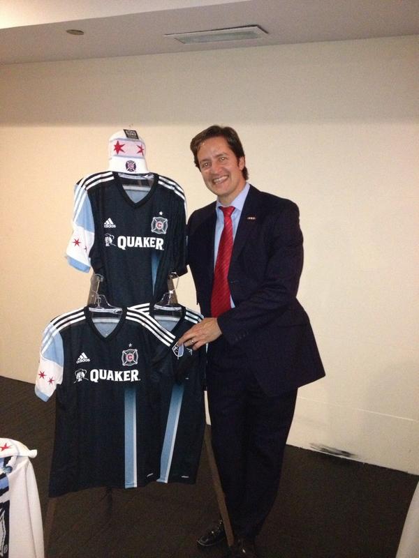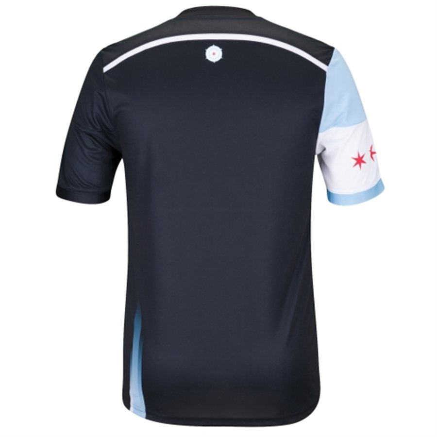 The shirt, which came about via a fan design competition, is largely black, with white and sky blue details, also incorporating elements of the Chicago city flag. The adidas stripes are white, as is the logo of the club sponsor, Quaker.