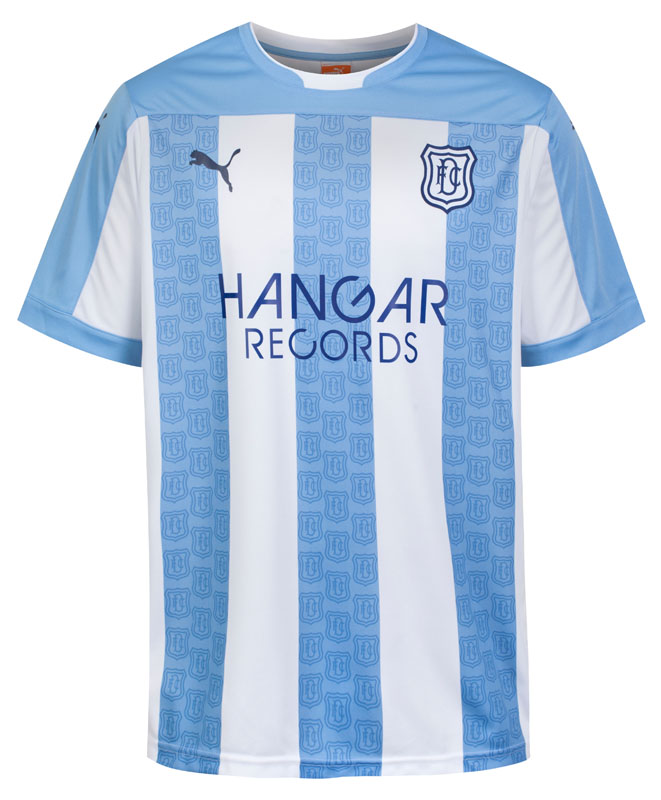 Nodding to shirts worn by the side back in their 1893 beginnings, the new Away example is in white and sky blue stripes. The shirt has a subtle collar, a classic crest (repeated in the watermark) and features the logo of new sponsor Hangar Records.