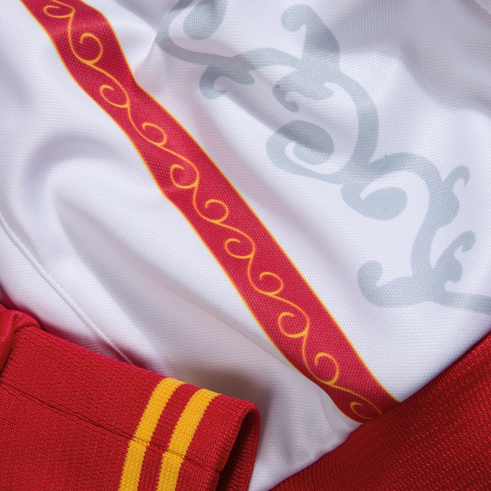 The embellishing watermark also continues onto the special edition red shorts, also trimmed in gold, with standard socks being used to complete the celebratory effect.