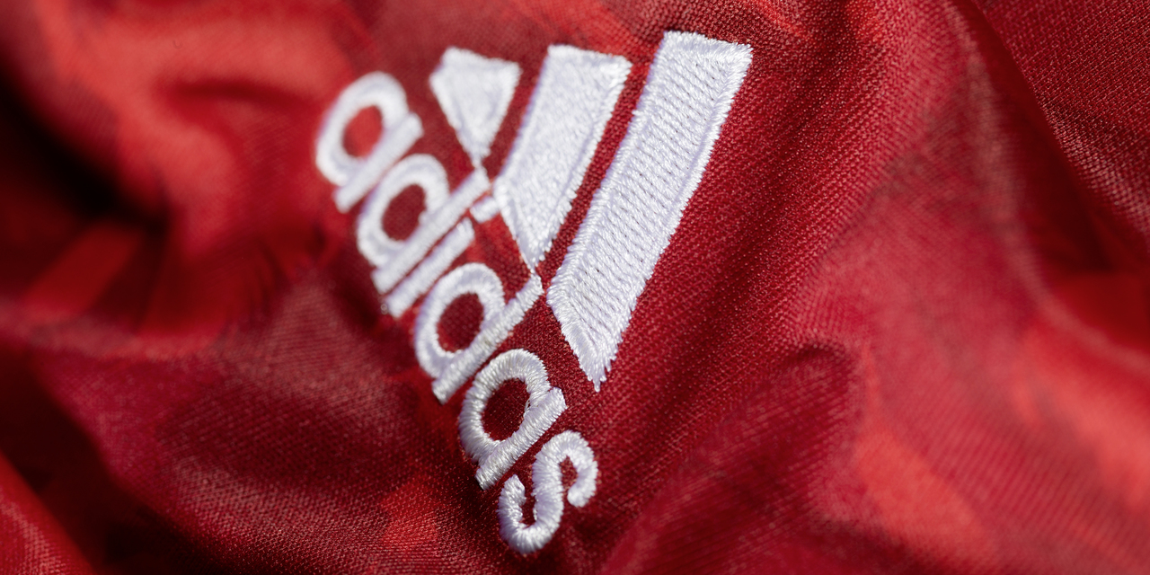 The shorts and socks are red with black adidas stripes and a softer tone of red on the hem, with the socks similarly coloured.