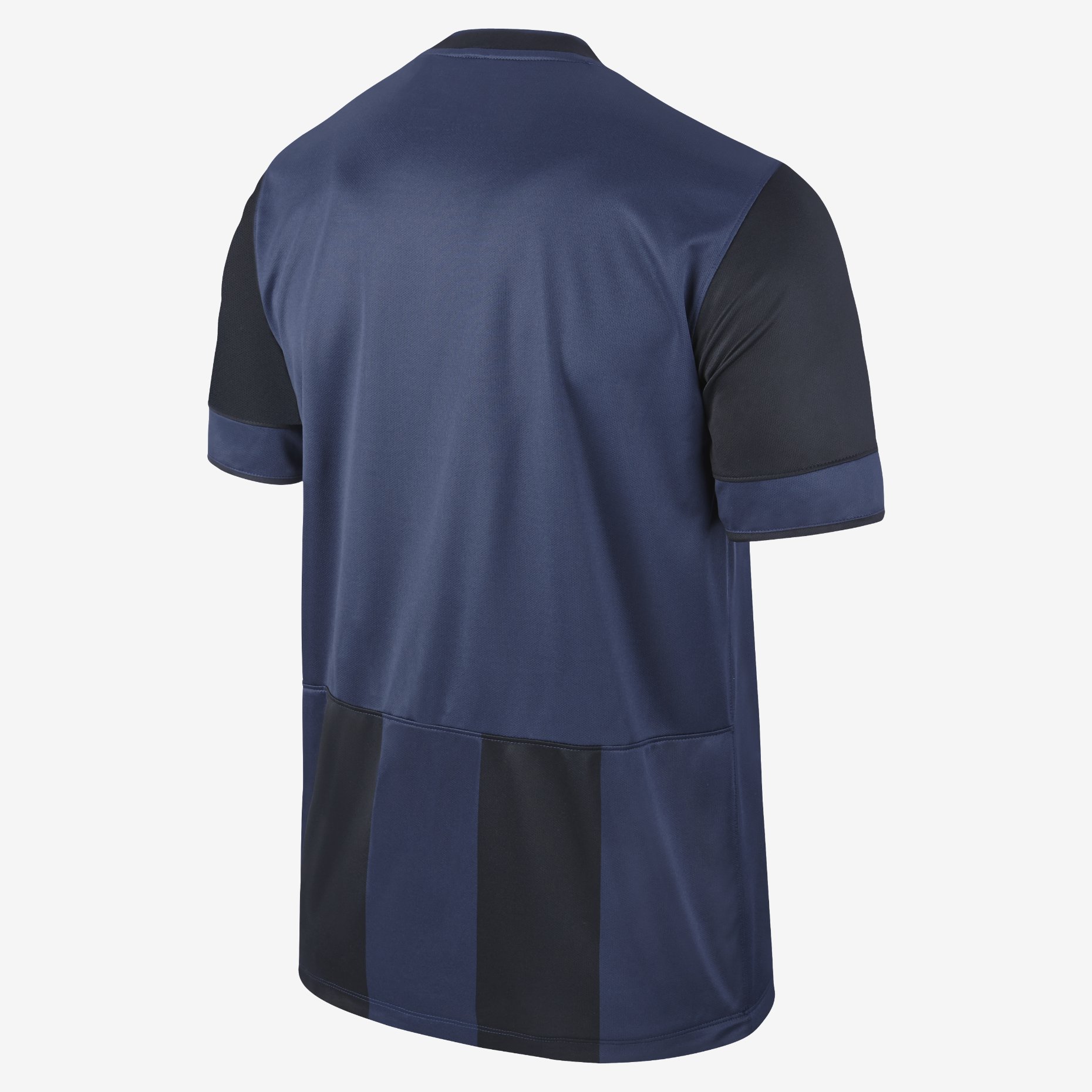The away kit retains the same bold stripes as the home shirt, but is fused together with dark blue and black colors to create a strong appearance.