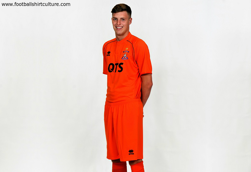 The all-orange kit features a shirt with just minimal embellishment, in the form of very subtle black trim. The crest is rendered with a full colour palette, whilst the Errea logo and QTS sponsor logo are in black.