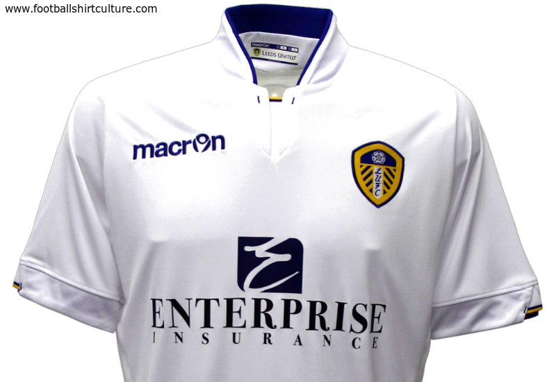 The logo of sponsor Enterprise Insurance appears on the front and, along with "LUFC" script at the top of the back, low down is secondary sponsor Help Link's branding.