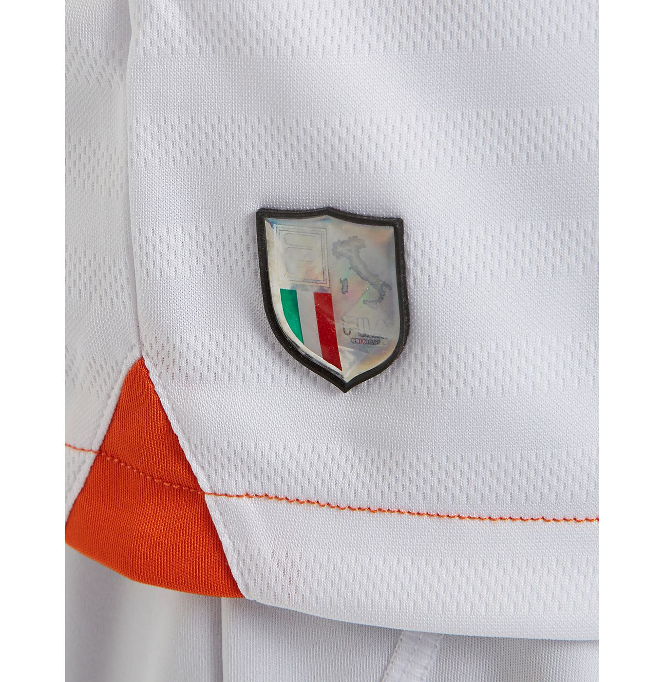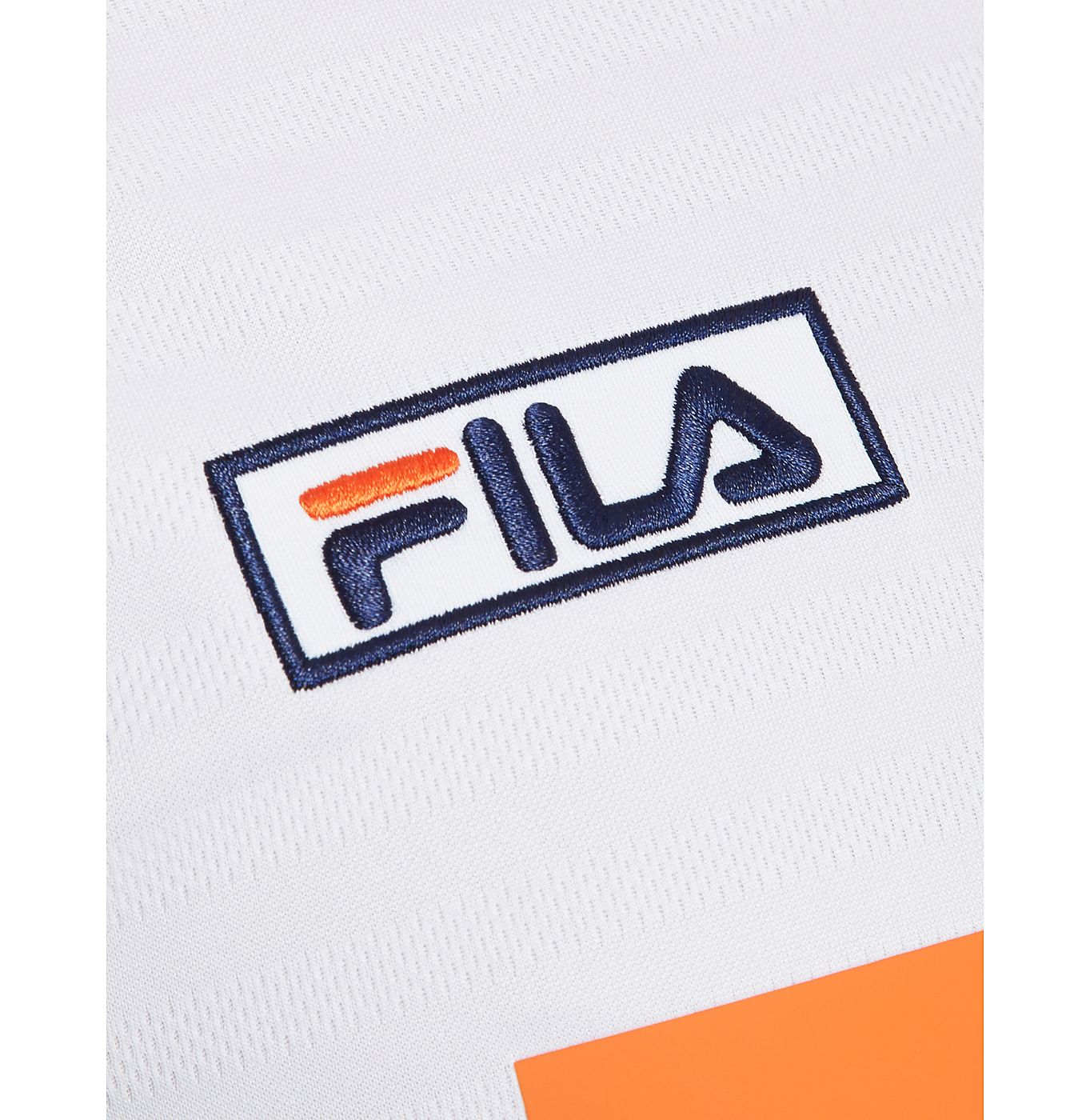 In a colour that has been familiar as a first choice option for the Hatters for a large proportion of their history, the white shirt is trimmed with a neat, orange edged V-neck-cum-foldover collar - which matches the bold easyJet logo - a navy slim cuff detail, the Fila logos and the full detail crest.