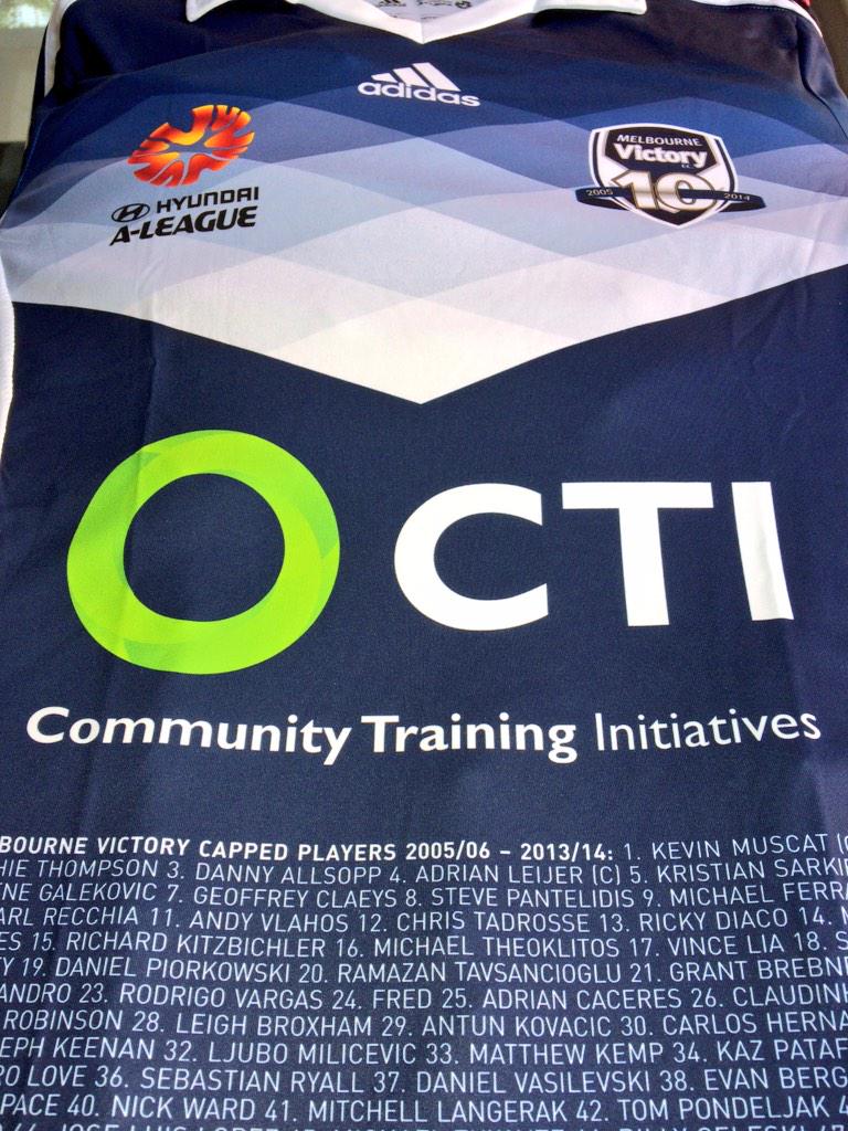 The new shirt features the names of all 100 players to have pulled on a Melbourne Victory shirt in a Hyundai A-League fixture between 2005 and the end of the 2013/14 season.
