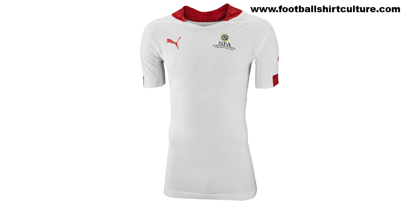 The white shirt has subtle use of African patterning on the collar and cuffs, in the form of red sublimated trim, as well as the Puma logos in red and the federation crest as further embellishment.