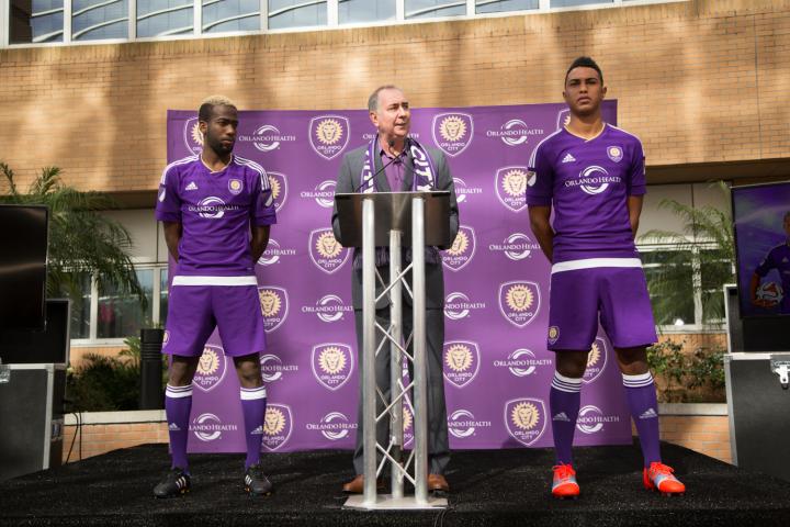 Orlando City Soccer Club unveiled the team’s 2015 Major League Soccer (MLS) home football kit during a press conference at Orlando Health’s downtown campus.