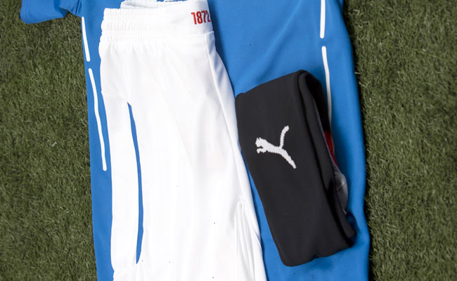 Puma Technology is included to assist the Ibrox team in their quest for promotion to the Scottish Premiership, namely in the form of heat transfer tapes running down the body and Dry Cell technology to keep the players cool and moisture free.