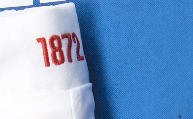In the traditional blue, with a neat white collar with red fastening detail, the shirt also carries the logo of new sponsor 32Red in white along with white Puma logos and crest, and a white partial cuff effect with the year "1872" in red - a reference to the foundation of the original incarnation.