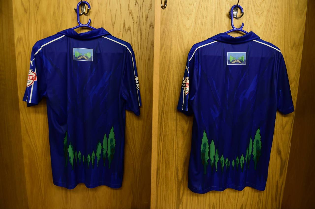 The shirt itself is in Royal blue and is based on the emblem of The Avenue School, featuring trees back and front that look not dissimilar to the Elm trees that formed a key part of the club’s previous crest.