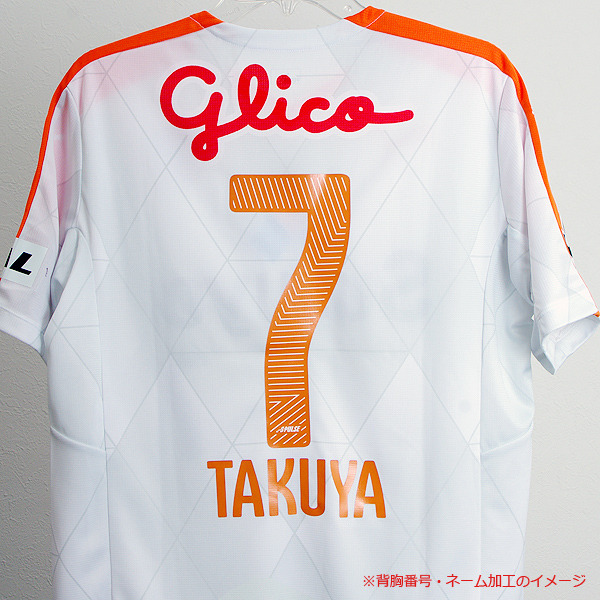 The collar is a neat discrete V-neck with orange and white sections and the shirt sponsors appear in their own branding colouring. The player names and - front and back - numbers are in orange.