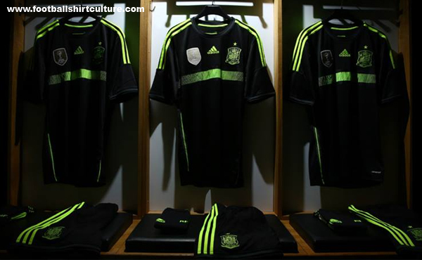 As predicted by earlier leaks, when required to change, the world champions will wear all black - shirt, shorts and socks - with fluoro trim, details, monochrome crest and adidas stripes. These colours are to be carried by Spain for the first time with this kit. Replica versions will also include a fabric 'World Champions' patch.