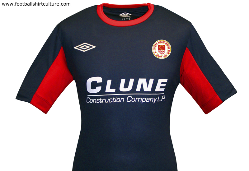 The League of Ireland outfit's crest is full coloured and the Umbro logo and the Clune Construction Company sponsor's logo are both in white for clarity.