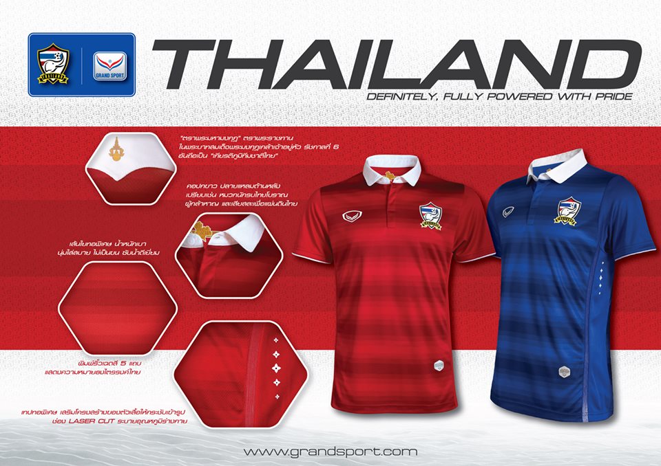 These are the new Thailand Home and Away shirts and kits, by Grand Sport, to be worn over the next 18 months to two years, through 2015 and into 2016.