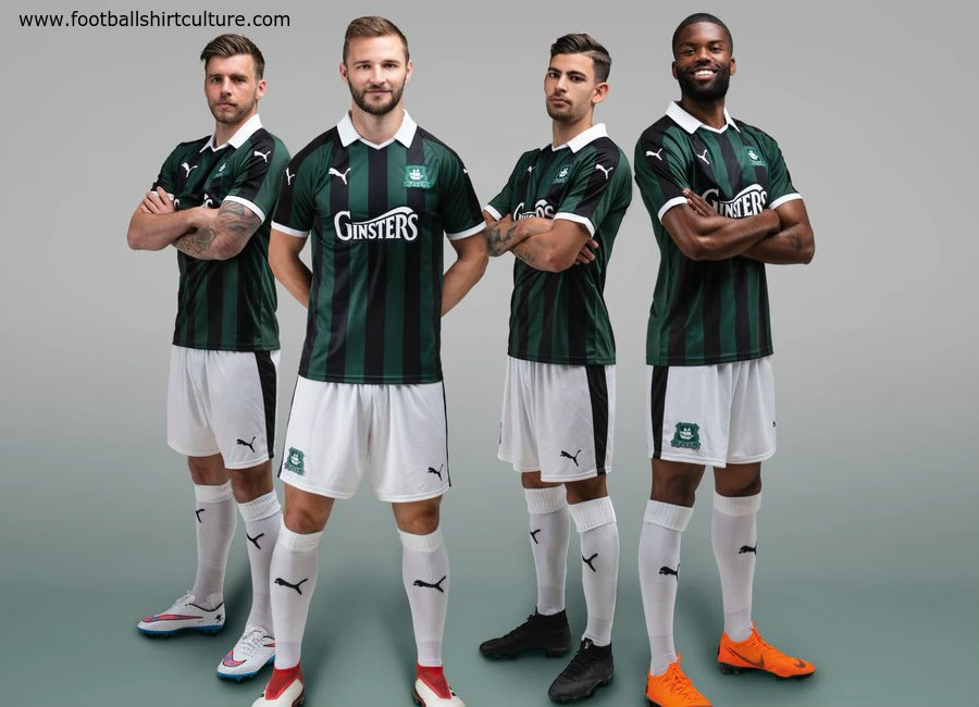 Plymouth Argyle's new Puma home kit for next season is a green and black vertical striped shirt, trimmed with a white V-neck collar and cuffs. The 2018-19 strip is completed by white shorts, with...