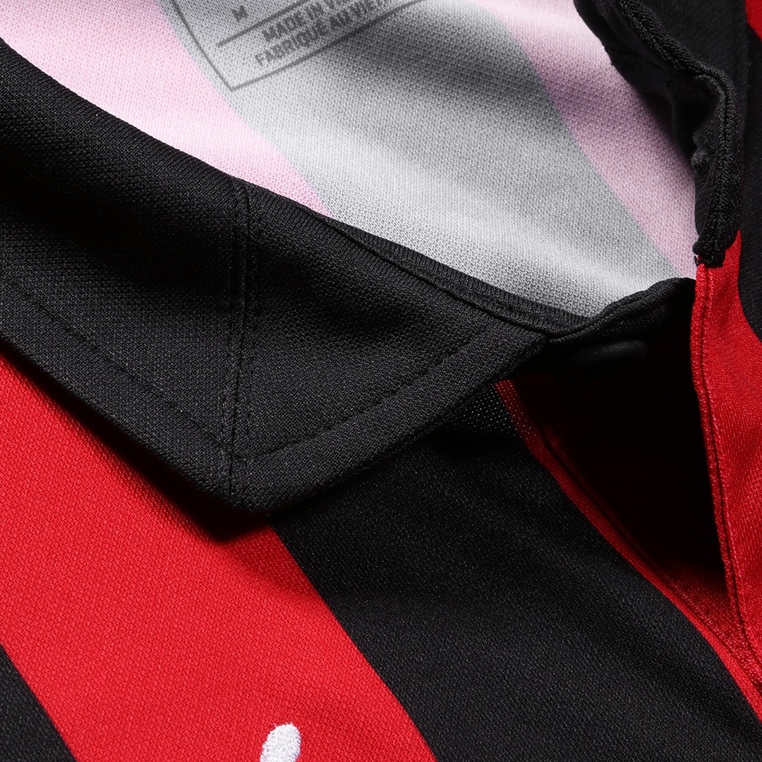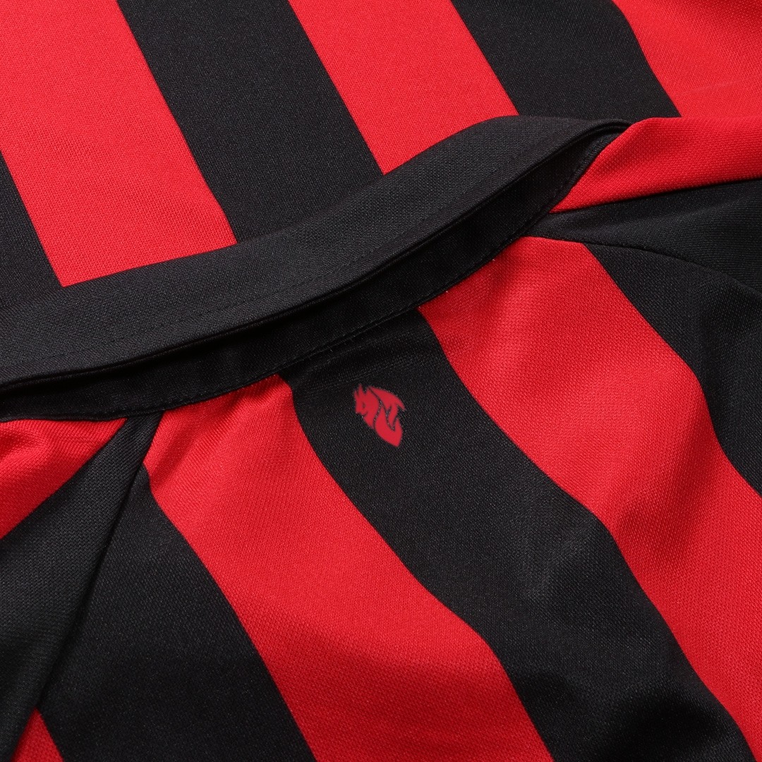 As classic as it can get, the Rossoneri's new home kit comes with the traditional red and black stripes, a classic polo collar and a small devil detail at the back of the neck.