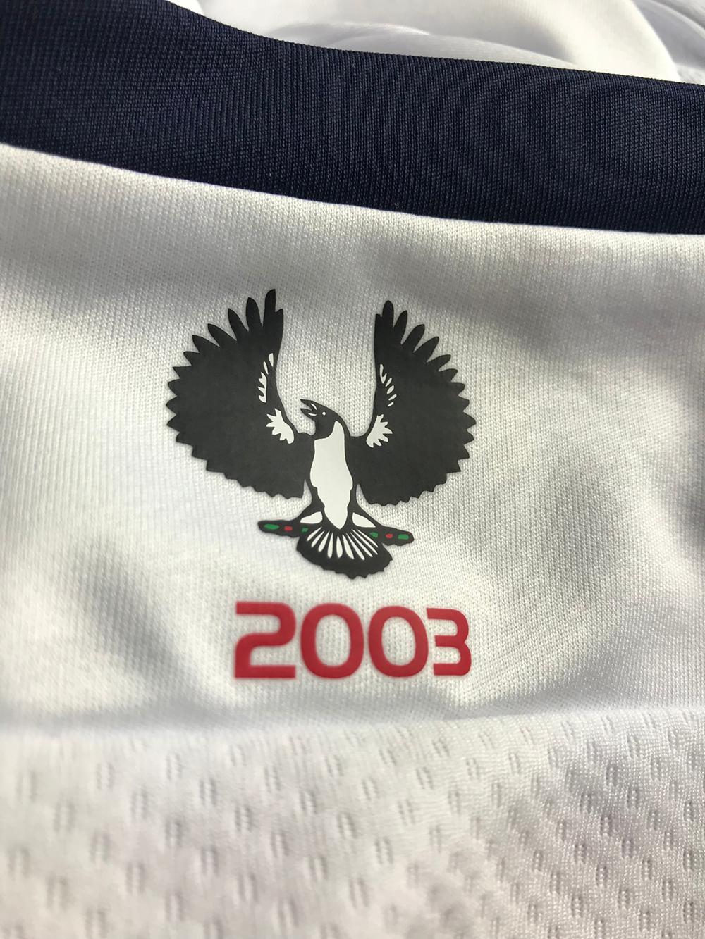 The Hyundai A-League logo and embroidered Adelaide United badge features on top of the two stripes, while, like the home jersey, the piping shrike appears on the back of the shirt.