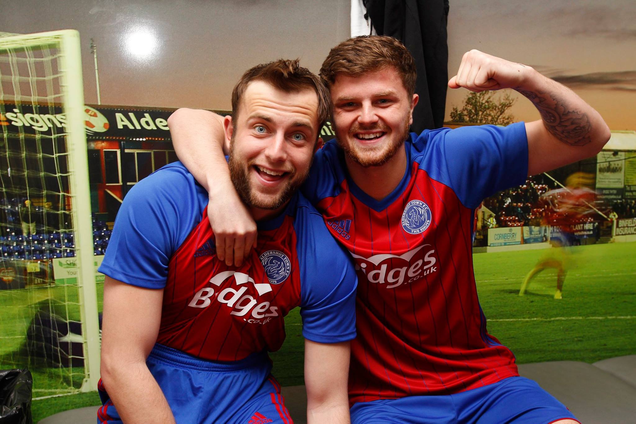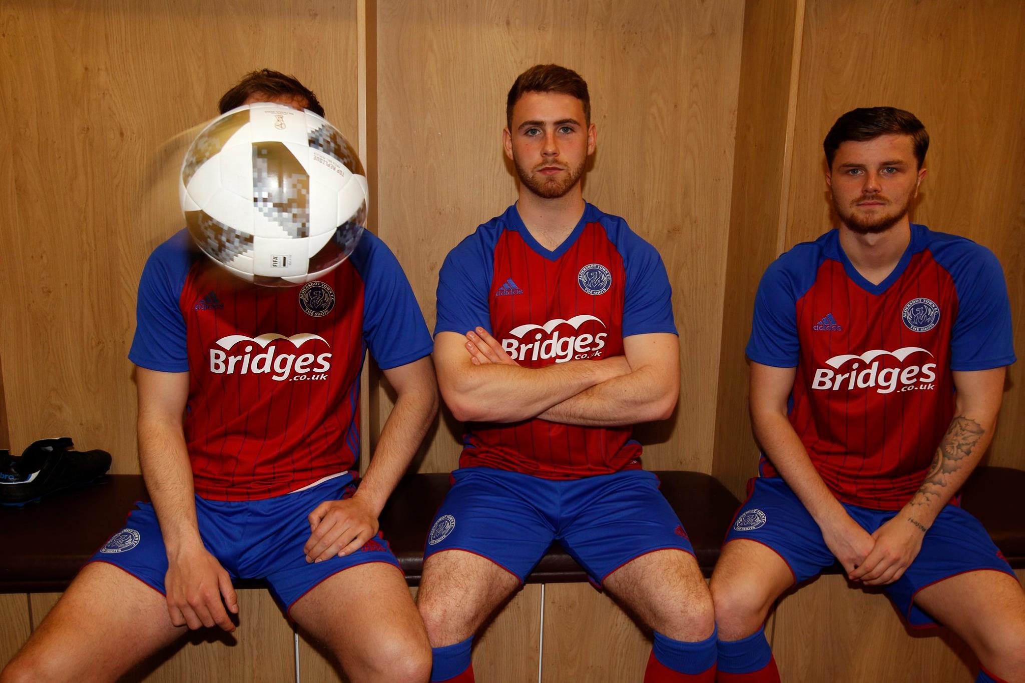 The bepoke home shirt is a classic Shots design in red and blue, once again featuring the logo of sponsors Bridges Estate Agents.