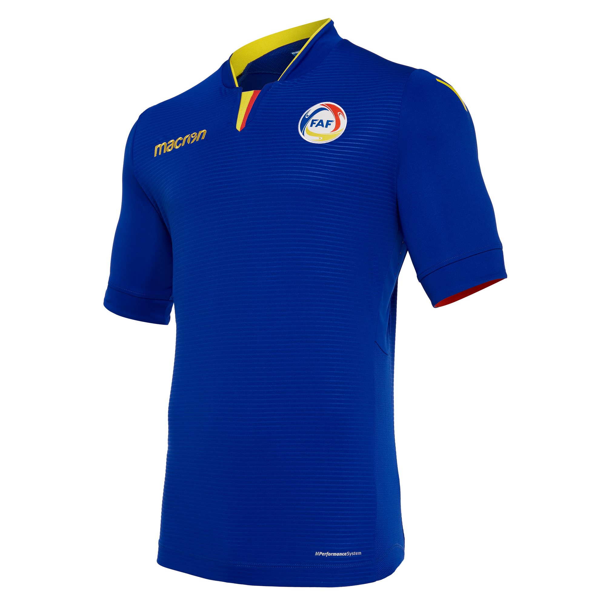 The Andorra away match shirt captures the country's traditional colours and is therefore predominantly blue with subtle red-and-yellow details.