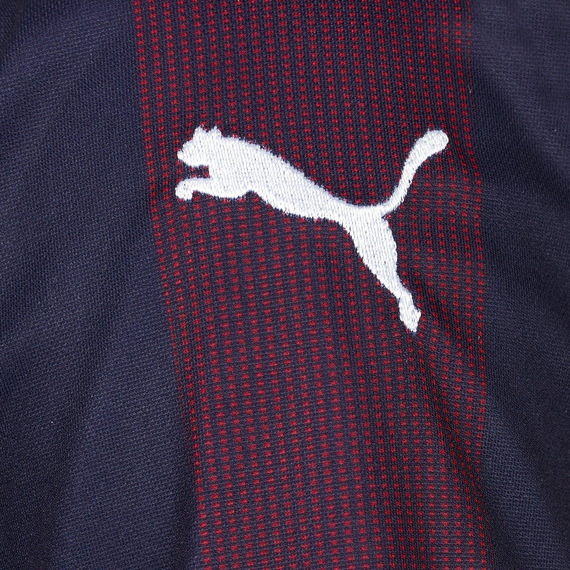 The colour blue has been a feature in Arsenal away shirts since the the early years and this shirt stays rooted in that tradition whilst also incorporating the colour red in the form of a diamond cut pulse pattern running through the middle with heather-marl flecks on the sleeves.