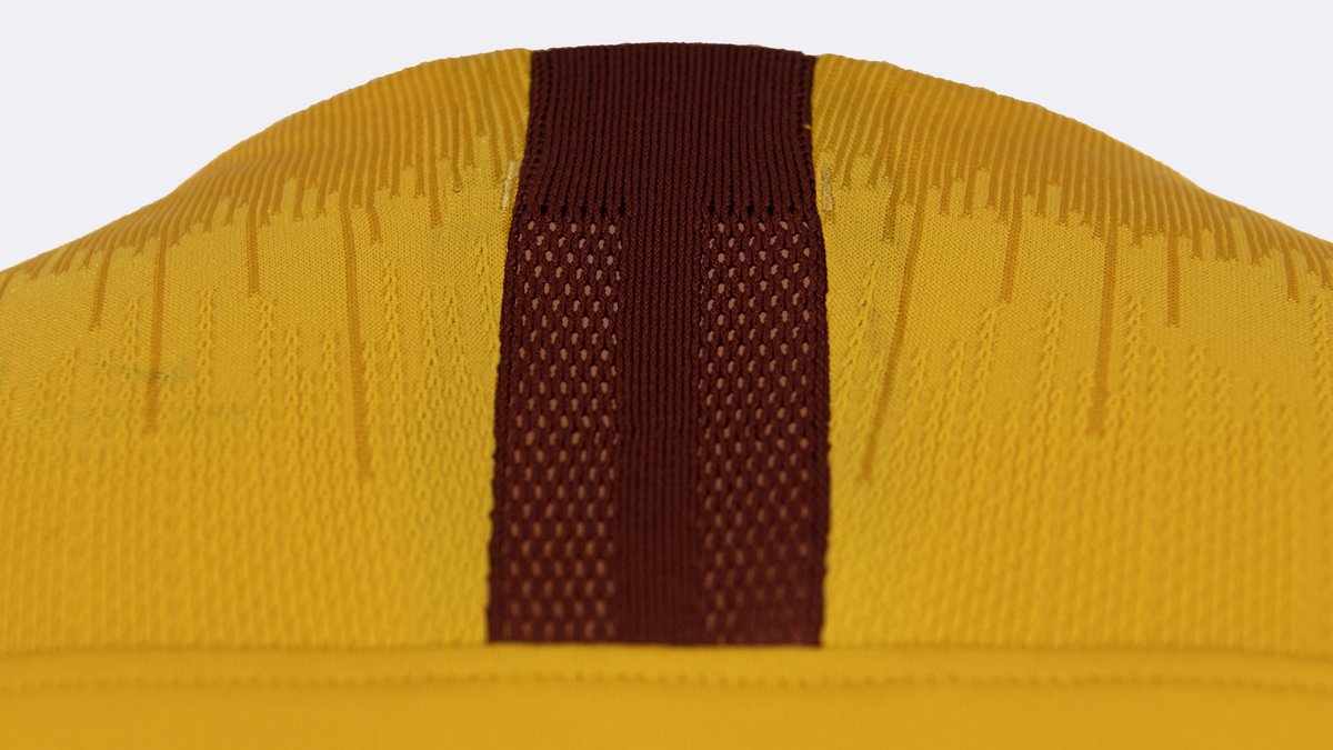 That includes a series of aerial map views of key moments in Roman history, from ancient times to present, to form a distinctive pattern for the fiery gold jersey. Discreetly embedded within the design is the Lupetto, the she-wolf described in the founding myth of Rome, a powerful club symbol for the Giallorossi. Both the distorted map and the icon celebrate the city’s formidable history and potent future. For the club, this means a kit that is, according to Hoppins, “a Roma kit like no other before it.”