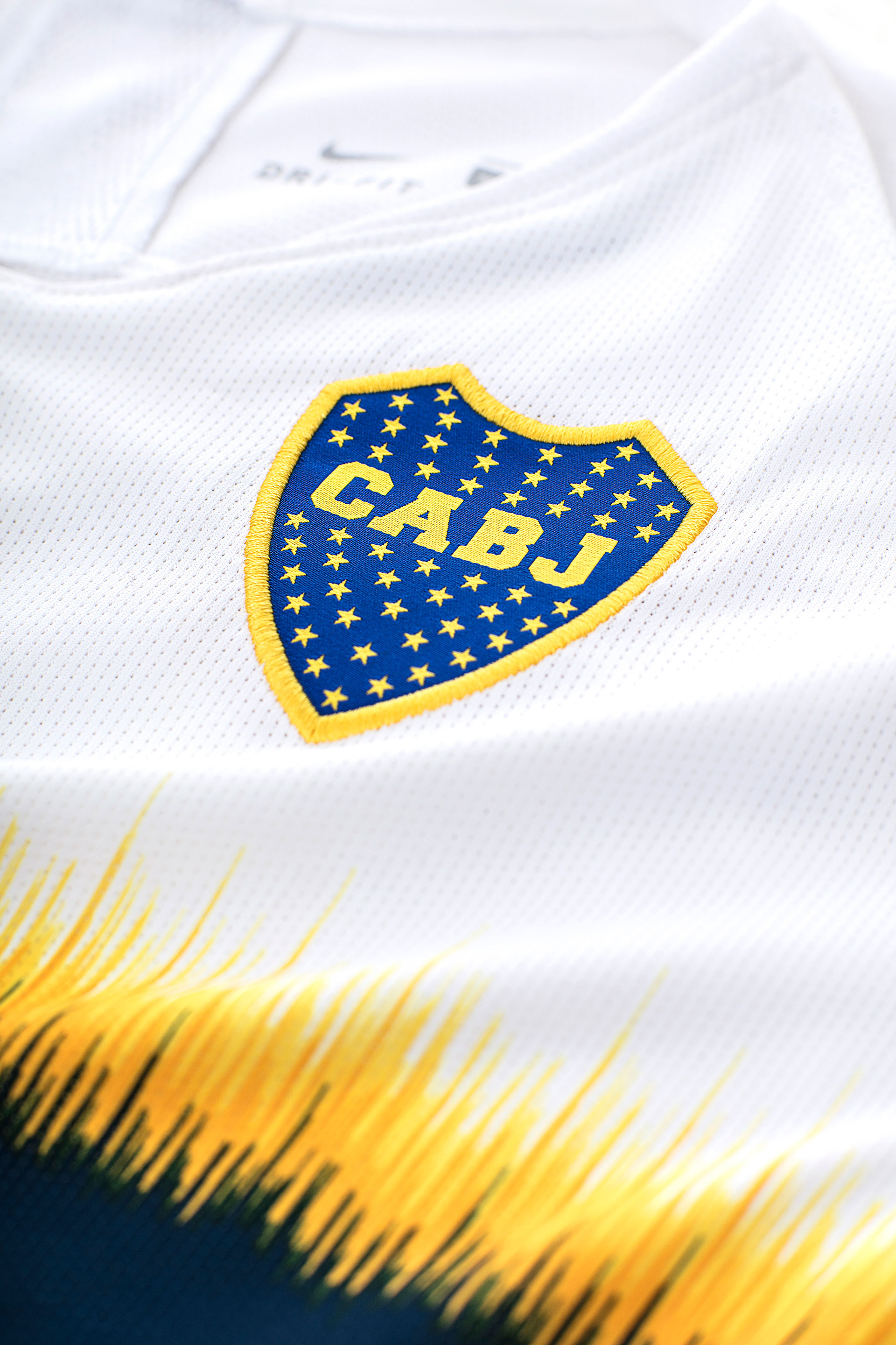 Inspired by a seismometer, the away jersey features a navy stripe with Richter scale-inspired yellow edges – a tectonic nod to the passion that the fans showcase at their home stadium of La Bombonera.