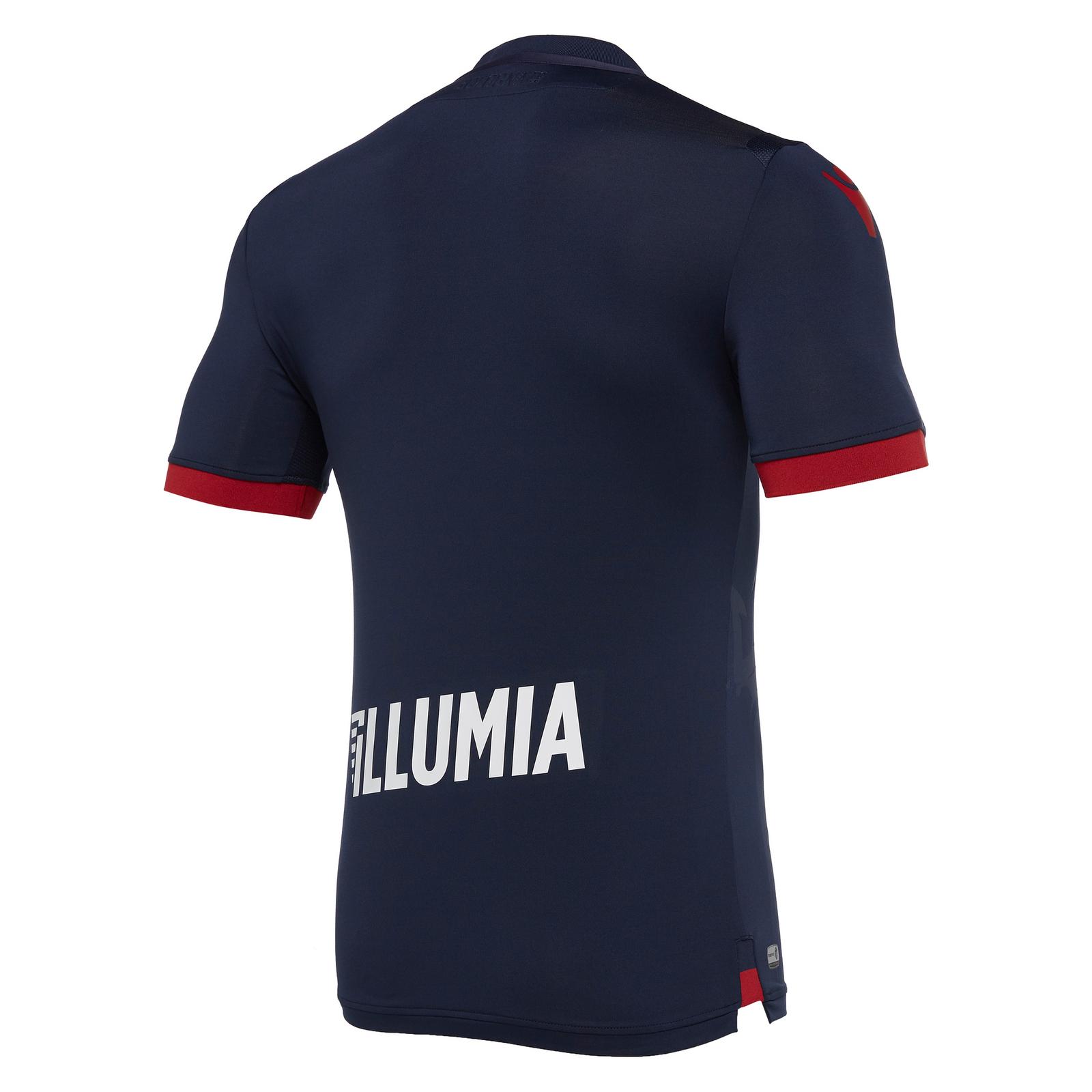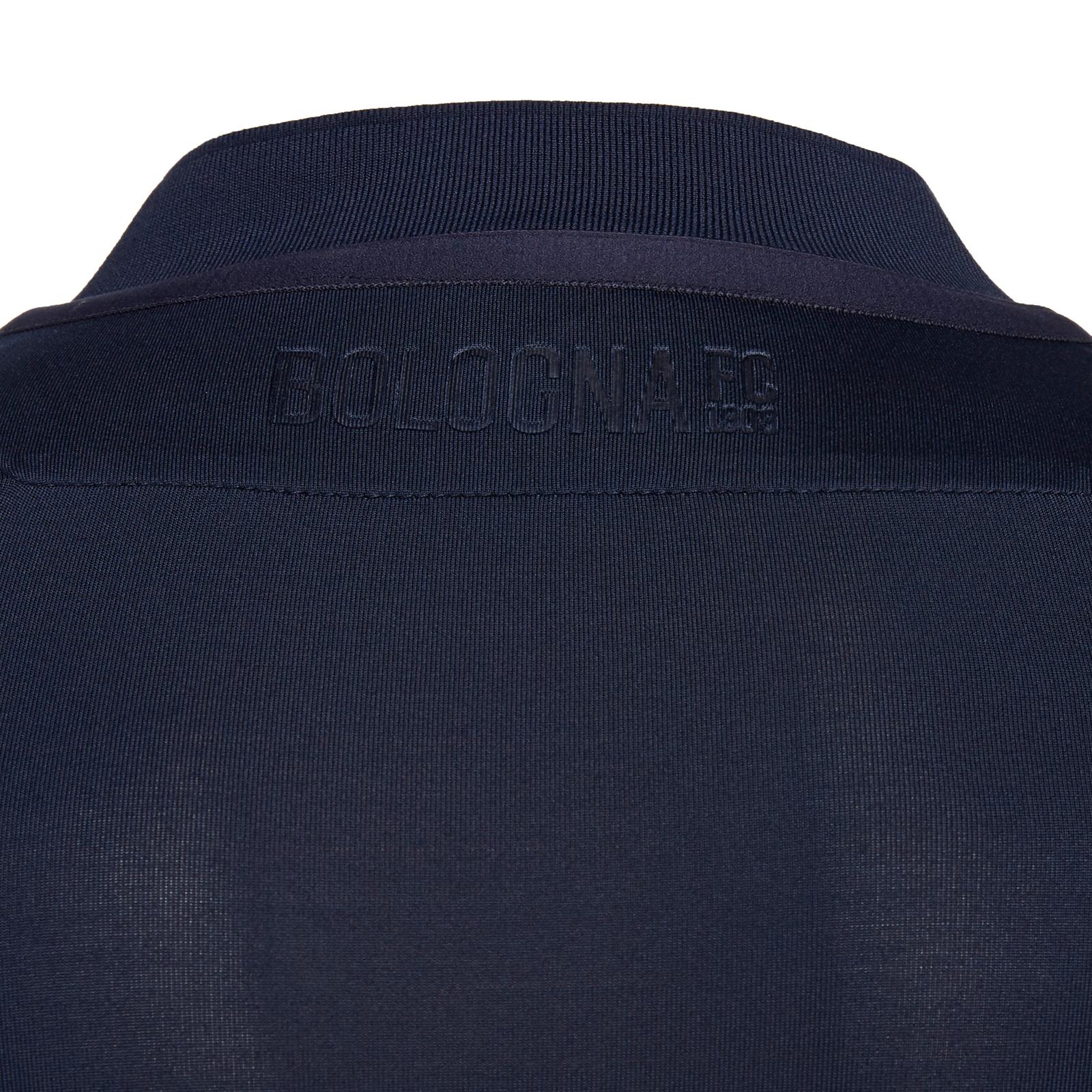 However, the image of Neptune is not the only detail paying tribute to the club: the backneck is personalised by the famous slogan 'Lo squadrone che tremare il mondo fa' and the collar is embellished by the embossed wording 'Bologna FC 1909' printed on the back. Completing the look are the elegant V neck collar and cuffs, both ribbed, the silicone club badge on the left of the chest, and mesh inserts designed to provide optimal ventilation and ensure maximum comfort and long-lasting freshness, even in the most challenging game situations.