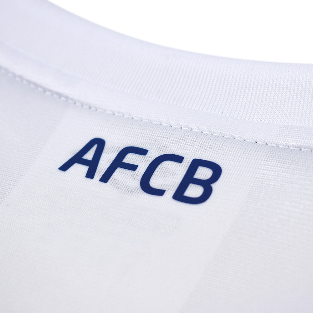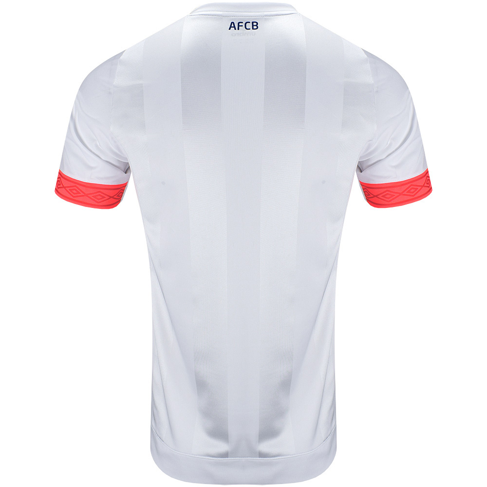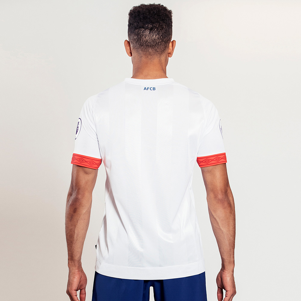Stylised back-of-neck 'AFCB' wording along with blueprint shorts and socks complete with fiery coral trim finish the kit.