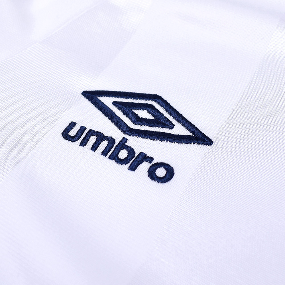 The club's new away shirt brings a brilliant white engineered matt shine stripe fabric to give a clean crisp visual.