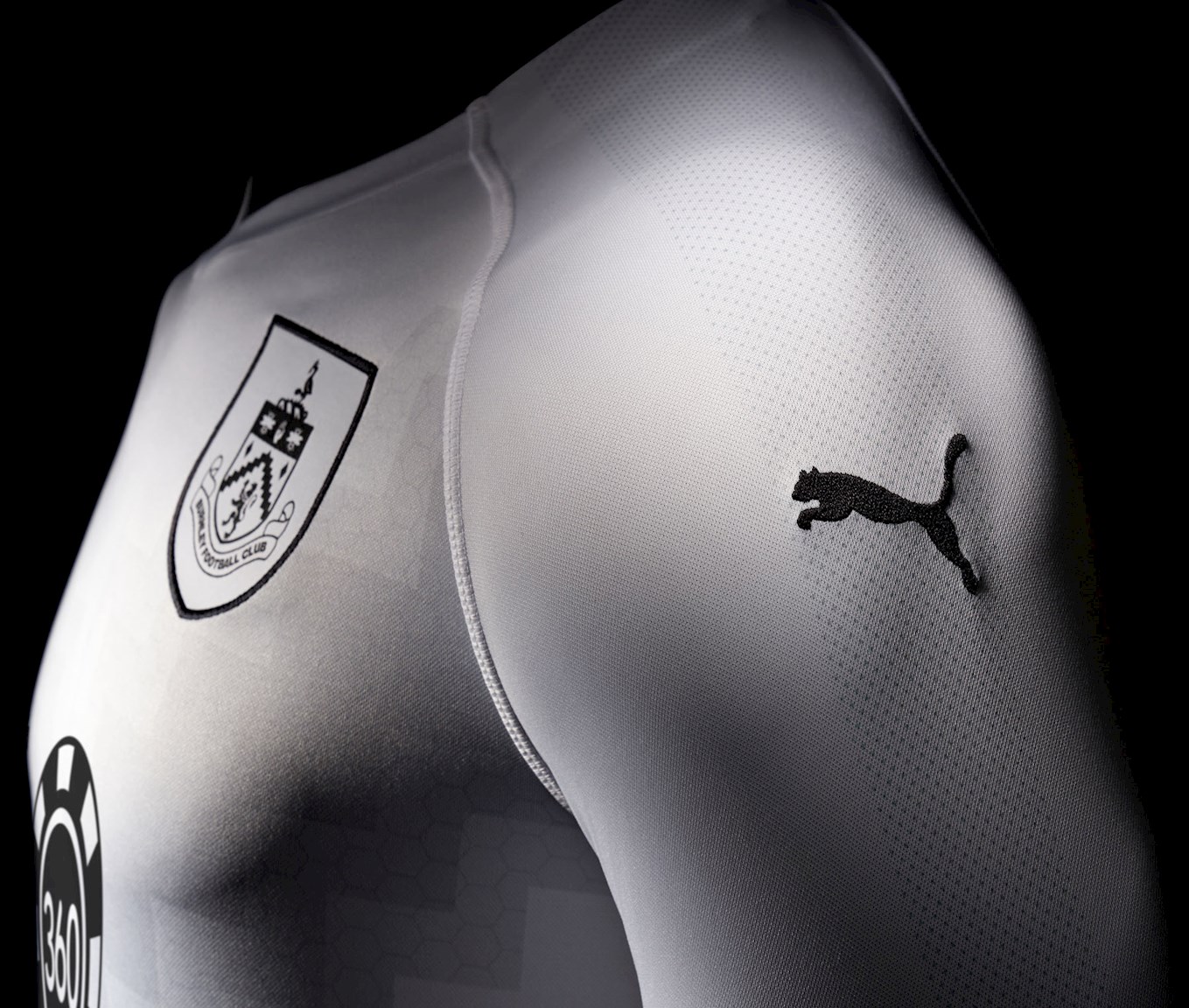 The all white kit, being worn to prevent any clash of colours with Aberdeen, is emblazoned with new principal club sponsor Laba360, and like the home kit carries a nod to the famous ‘V’ kit of the 1970s, in the form of a tonal, hexagonal design running across the chest.