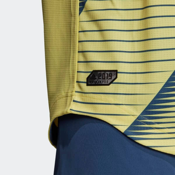 This Colombia 2019 Copa América Adidas Home shirt shows off a design inspired by traditional patterns featured on the hats and skirts of cumbia dancers.