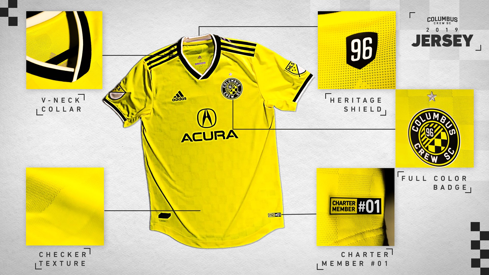 A one-of-a-kind jock tag designating “Charter Member #01” rests on the front of the jersey in recognition of being the first MLS club charter awarded. Additionally, a heritage shield commemorating the Club’s initial MLS season in 1996 is affixed to the back just above the player names.