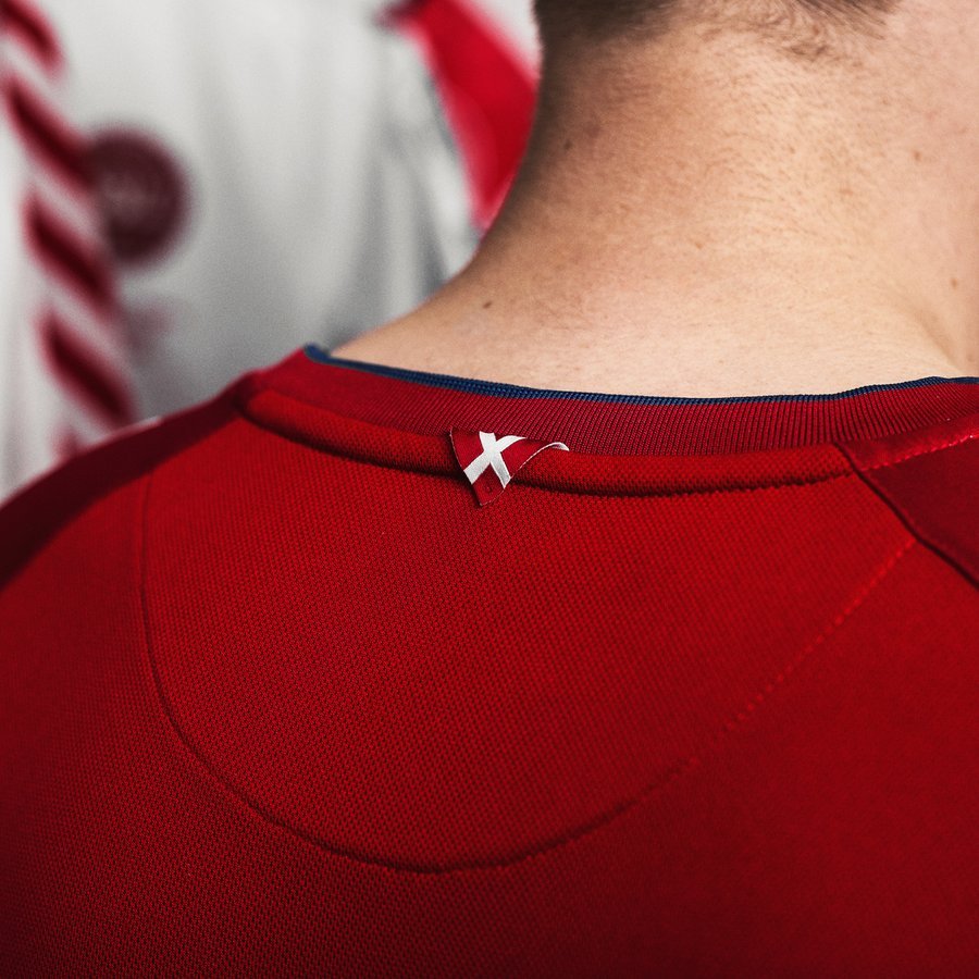 The new Denmark national team jersey for 2018 was inspired by the uniform worn by the Danish Life Guards. The cross-lacing from the uniform tunic is integrated in the weave of the new national team jersey in a subtle look in red nuances.