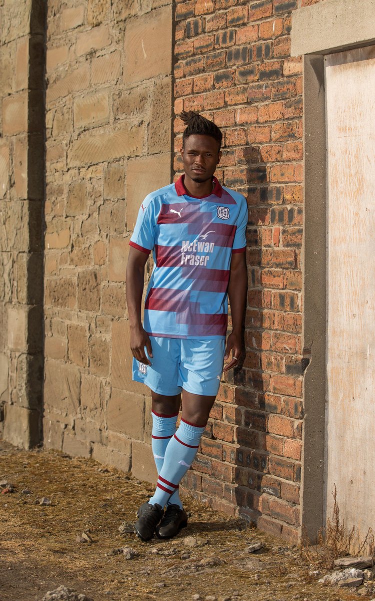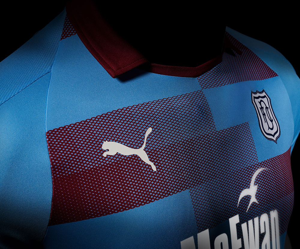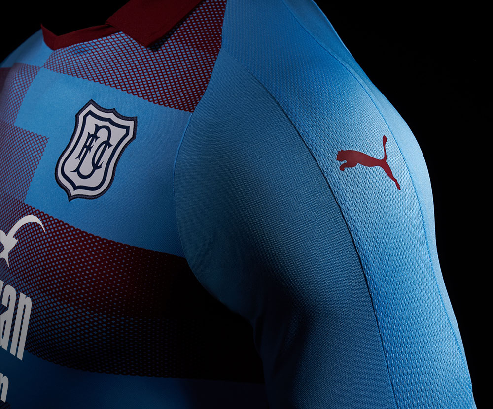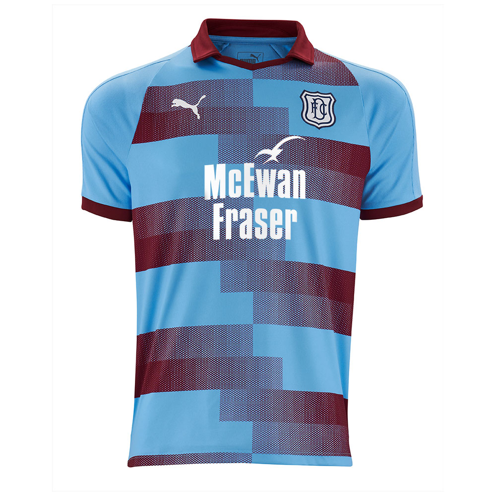 With this season being Dundee’s 125th anniversary, the new light blue and claret away kit is a homage with a modern twist to a kit worn by one of Dundee’s founding clubs East End.